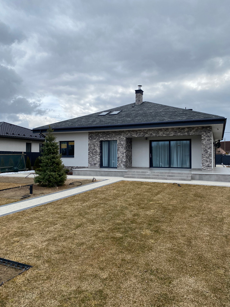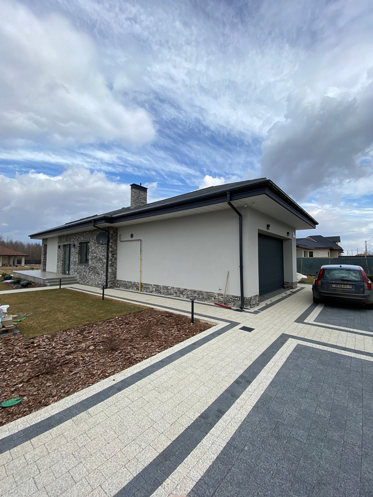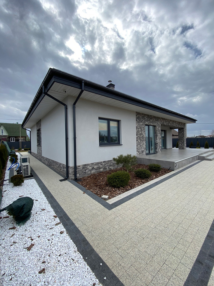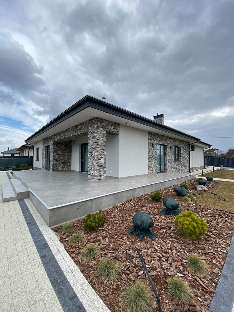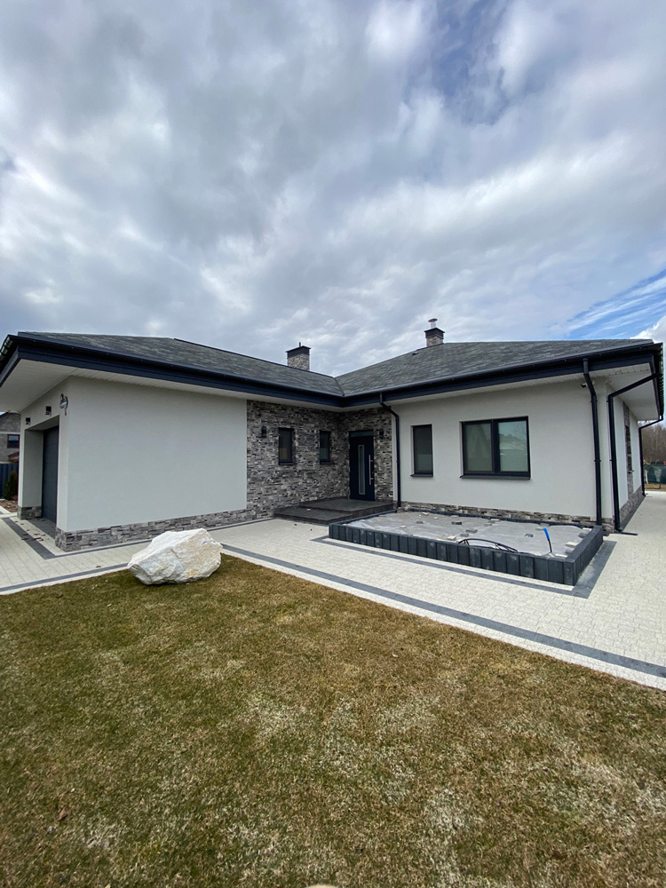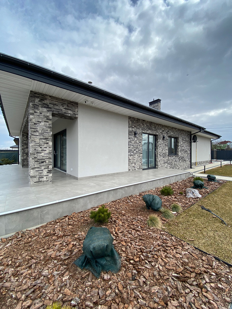 Современная отделка фасада коттеджа согласно дизайн-проекту.