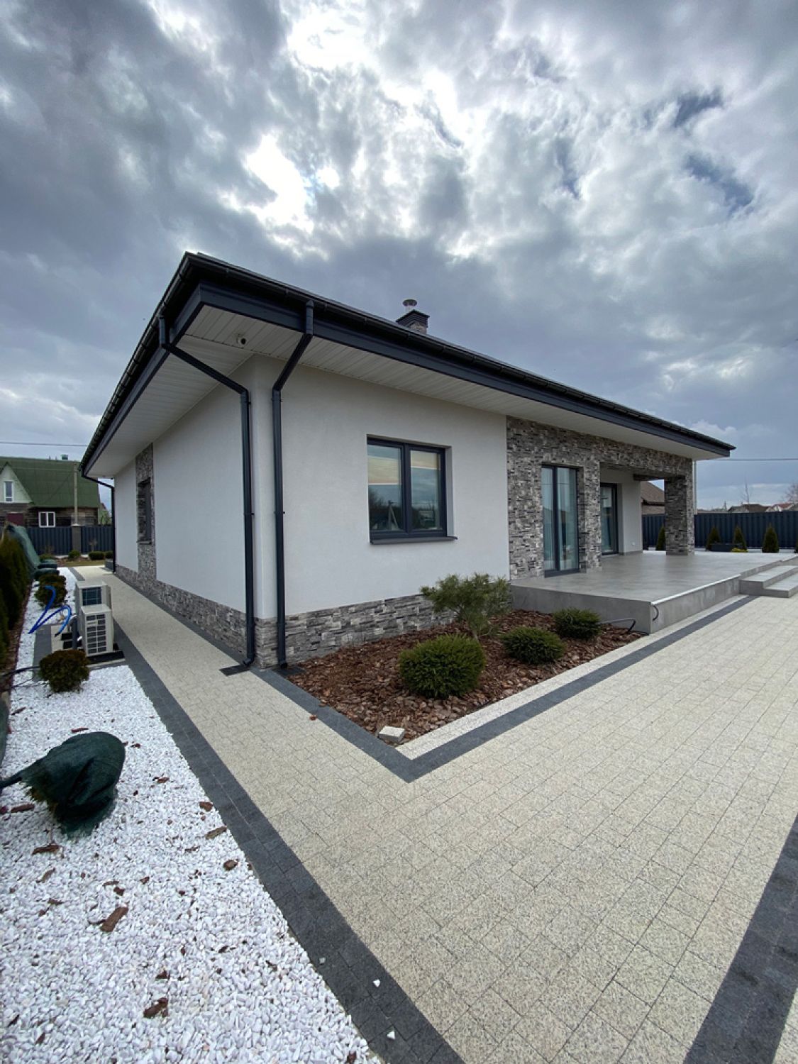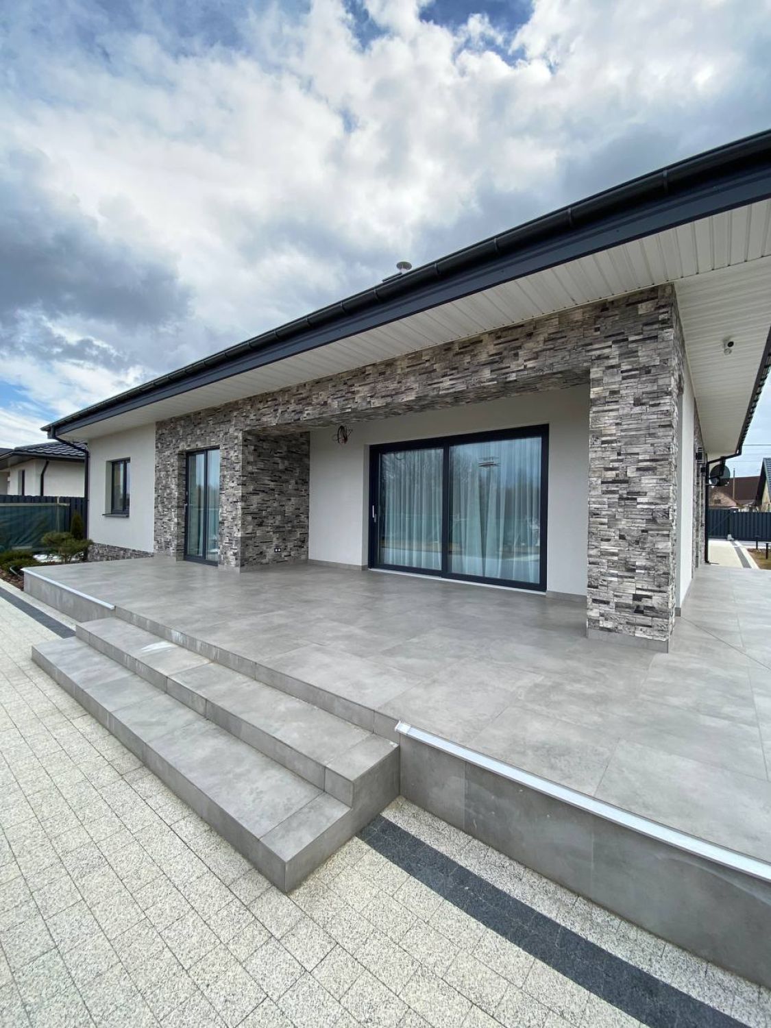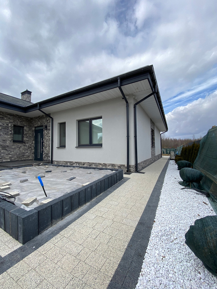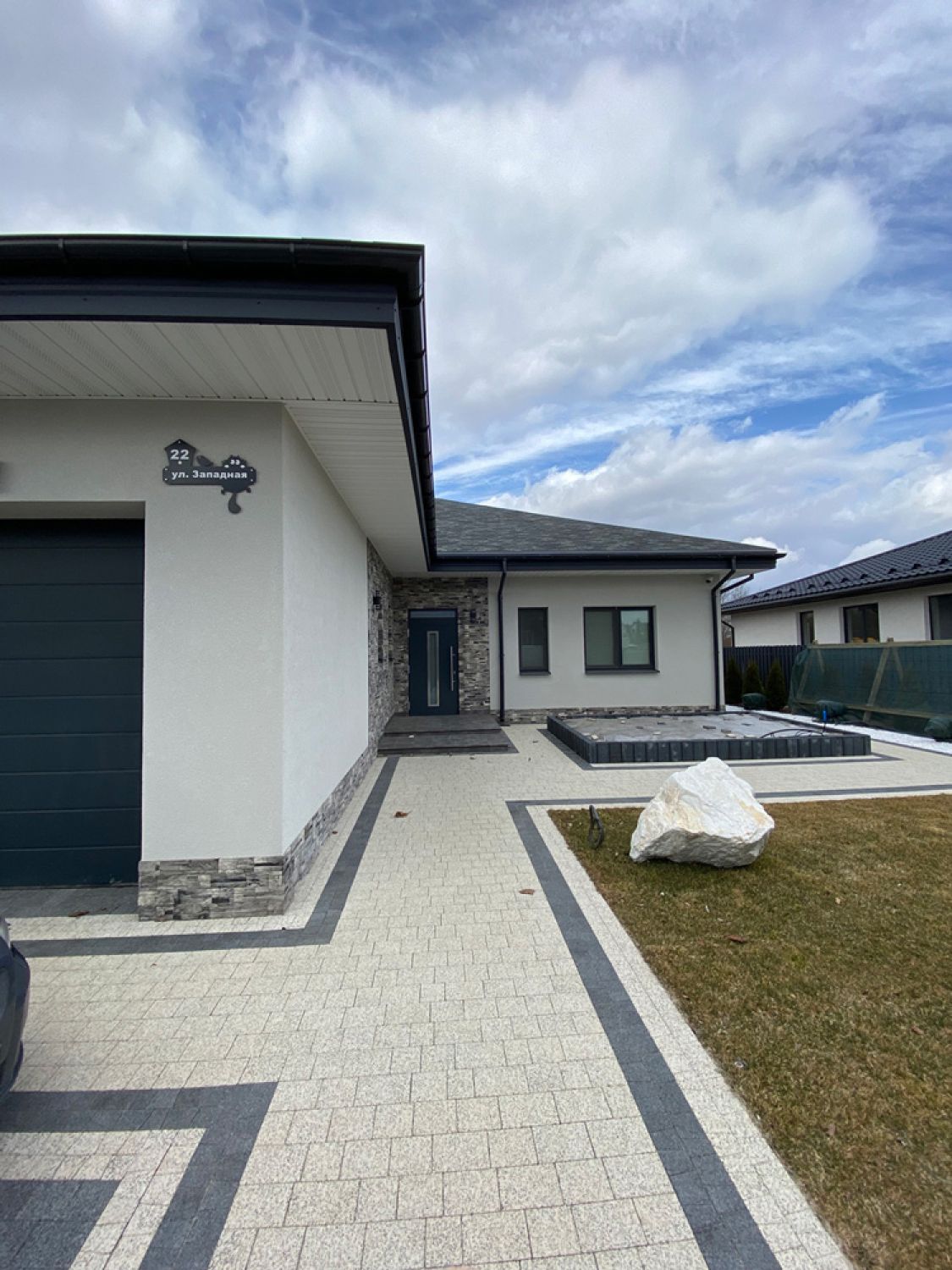 Современная отделка фасада коттеджа согласно дизайн-проекту.