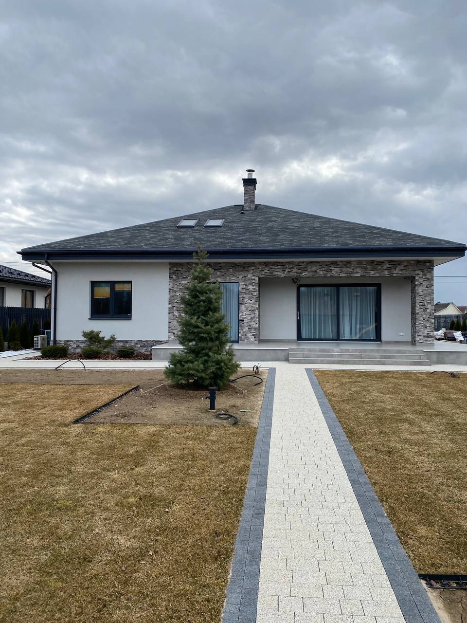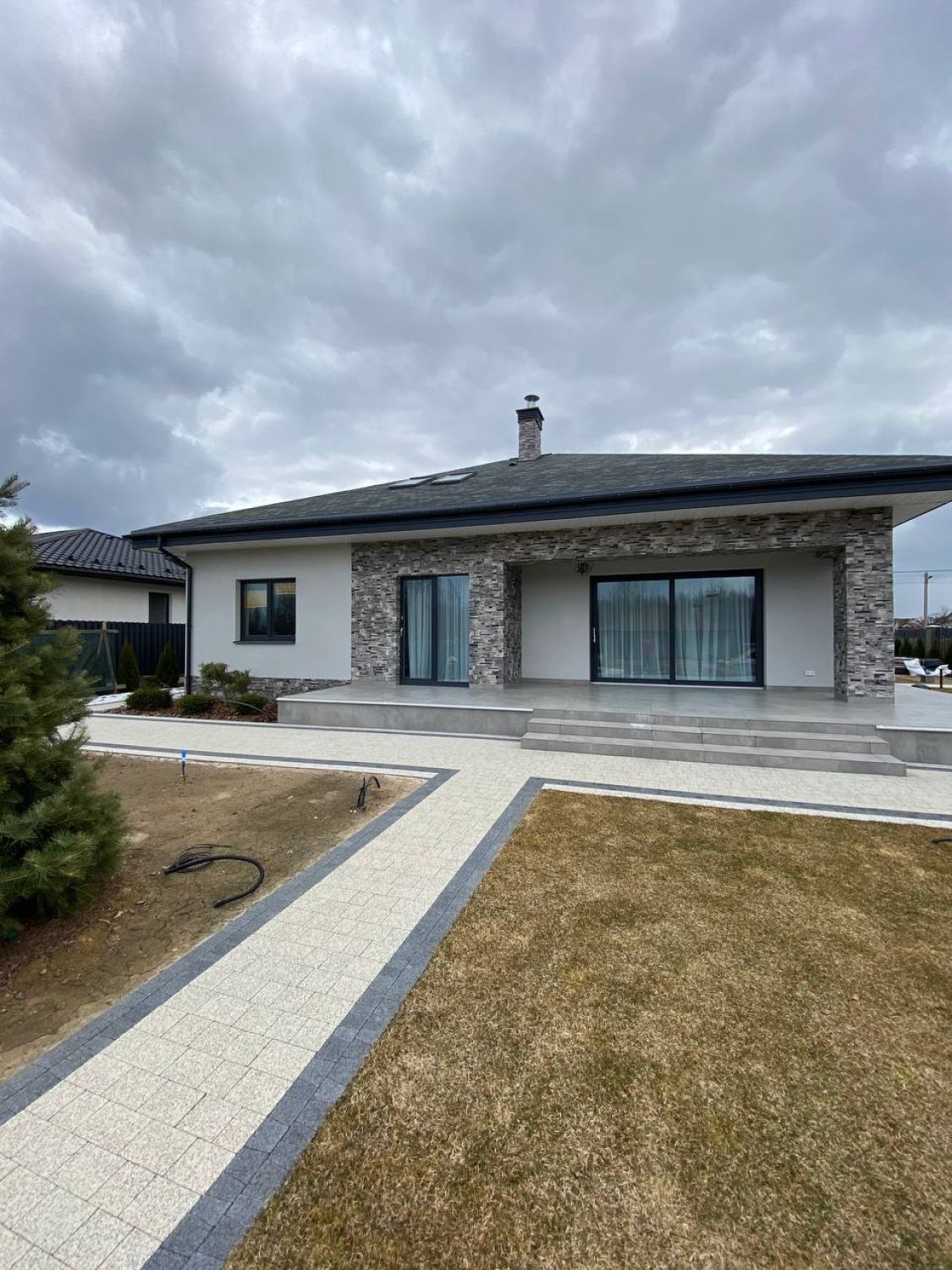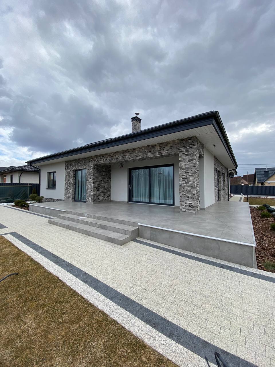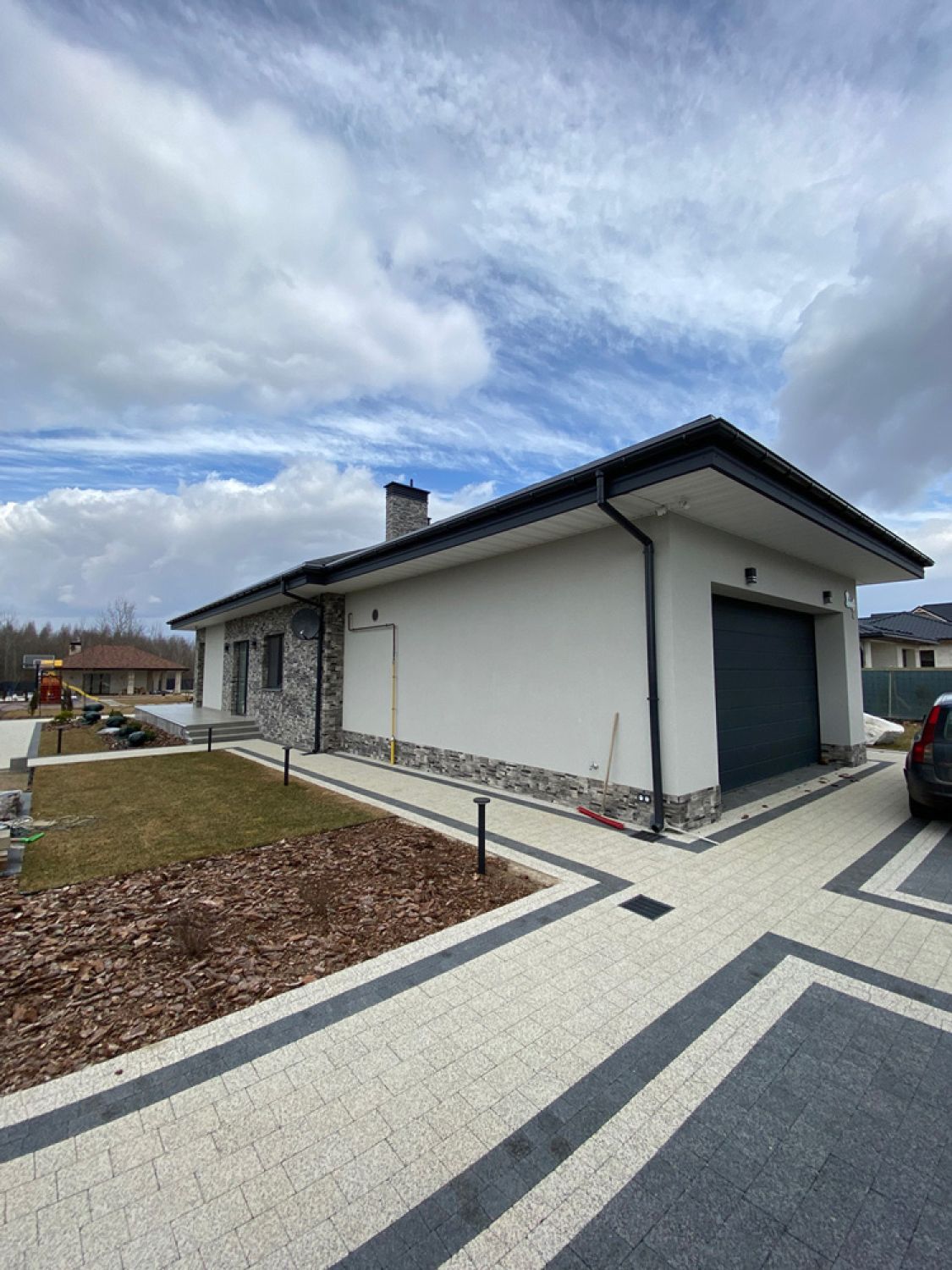 Современная отделка фасада коттеджа согласно дизайн-проекту.