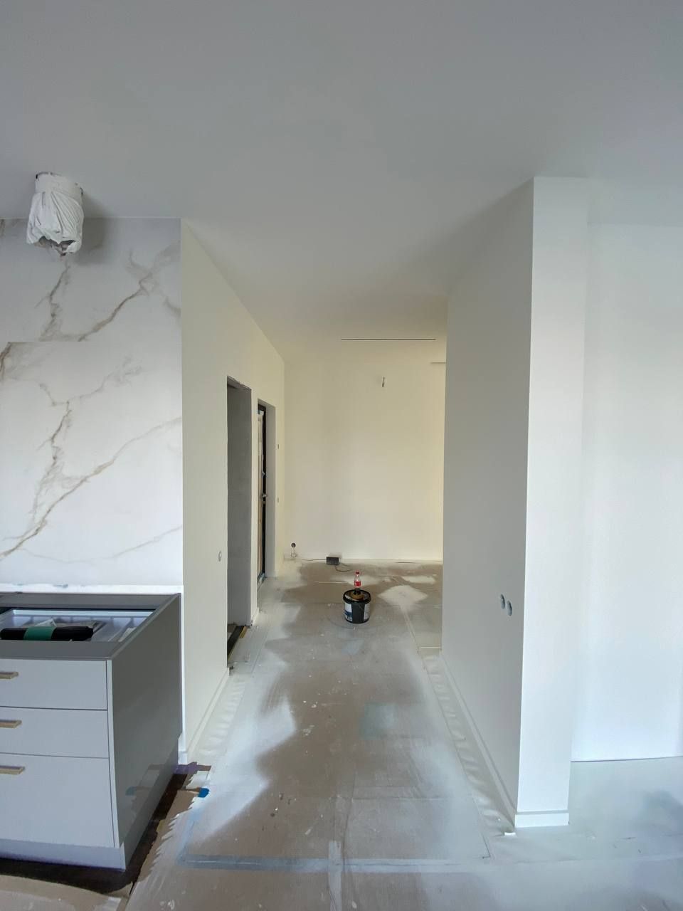 Выполнить ремонтные работы по согласованию с заказчиком, без дизайн проекта. Выполнены следующие работы: сантехника,электрика,потолки из гкл, малярные работы, полы, облицованы сан узлы.